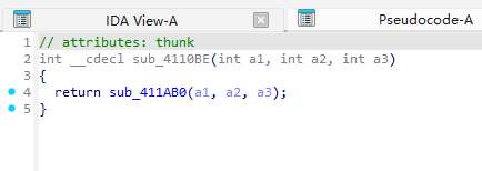 诶,有一个陌生的函数sub_4110BE,我们跟进一下看下。