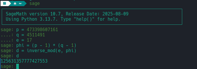 SageMath 是非常适合数论和 RSA 计算的工具,支持大整数和模逆元直接计算。
