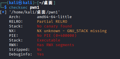 可以看到开了很多东西,64位小端序,没有栈溢出保护,NX先默认可执行,没有随机地址