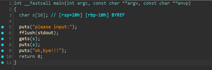 A1["s[16] 缓冲区"] --> A2["保存的 RBP"] --> A3["fun() 地址<br/>(覆盖的返回地址)"]