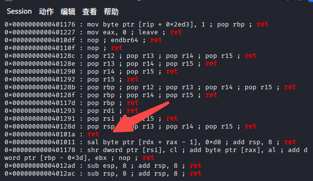 1 | ROPgadget --binary ./ret2fun | grep "ret" |