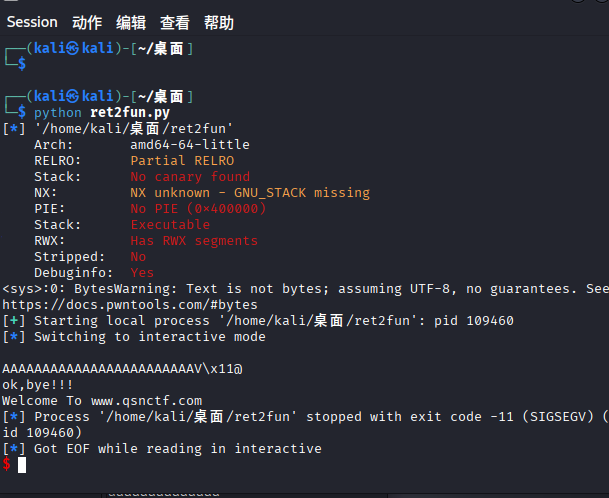 【青少年CTF】PWN-刷题记录-ret2fun1